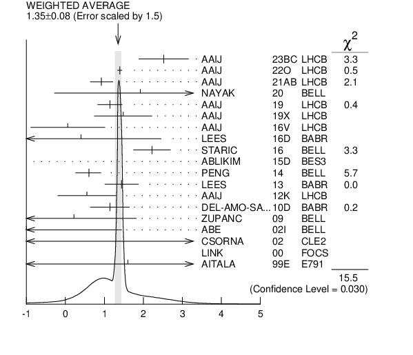 The ranges of AUBERT 2003Z, LINK 2005H, LI 2005A, and ZHANG 2006 measurements are for 95$\%$ confidence level.